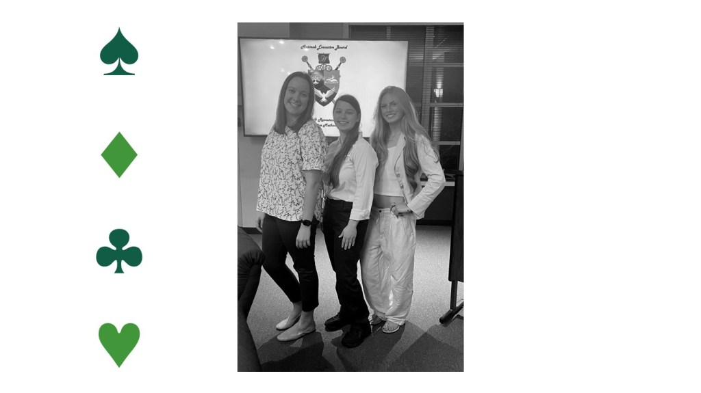 To support their peers, in partnership with SGA, Ms. Lindsey Bartz, Ms. Hana Saich, and Ms. Alexa Wooten described qualitative studies the team is working on with Dr. A.T. Vogel in the Department of Management and Organizations.